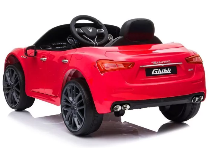 Carro com 108cm de comprimento e 56cm de largura. Adequado para uma criança até 5 anos. O brinquedo perfeito para a diversão dos pequenos. É um carro que se destaca pelo seu design desportivo, Modelo Maserati Ghibli licenciado pela Maserati e com equipamento completo. Para destacar algumas de suas características, poderíamos referir aos seus dois motores 45w, equipamento de áudio com MP3, USB, SD, Farois LED, suspensão, abertura da porta, controle remoto parental de 2,4 GHz, saída lenta para evitar acidentes e muitos outros recursos que descrevemos mais abaixo: