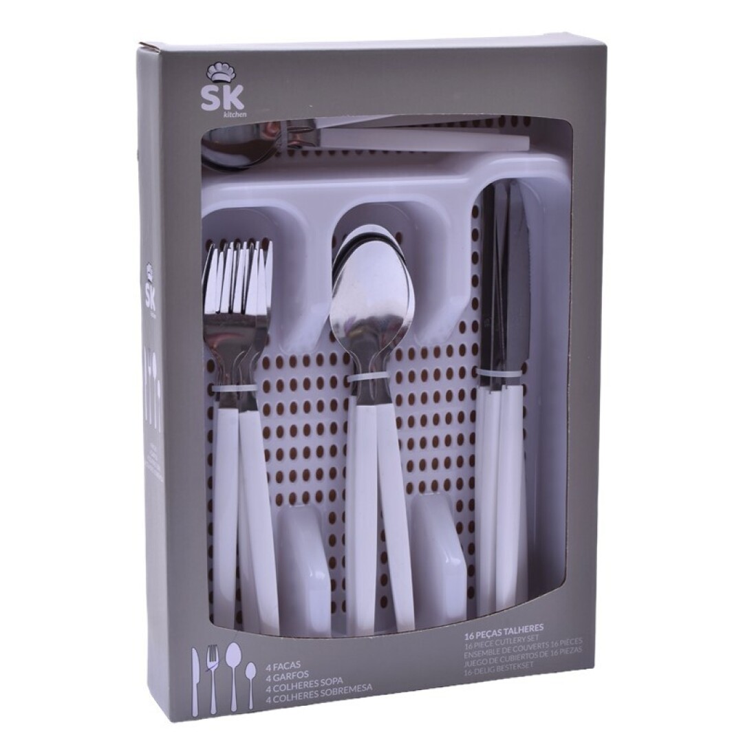 Conjunto 16 Talheres c/Suporte – Brancos