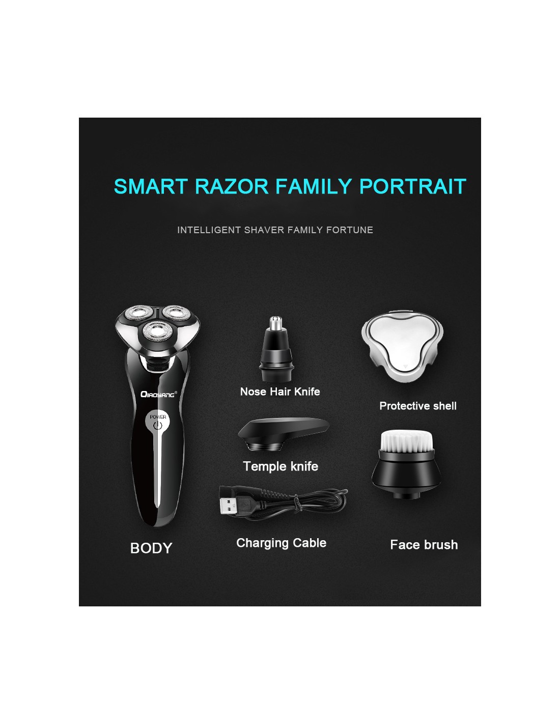- Sistema 4 em 1: Inclui acessórios para barbear, aparar cabelo, remover pêlos do nariz e escova de limpeza facial.