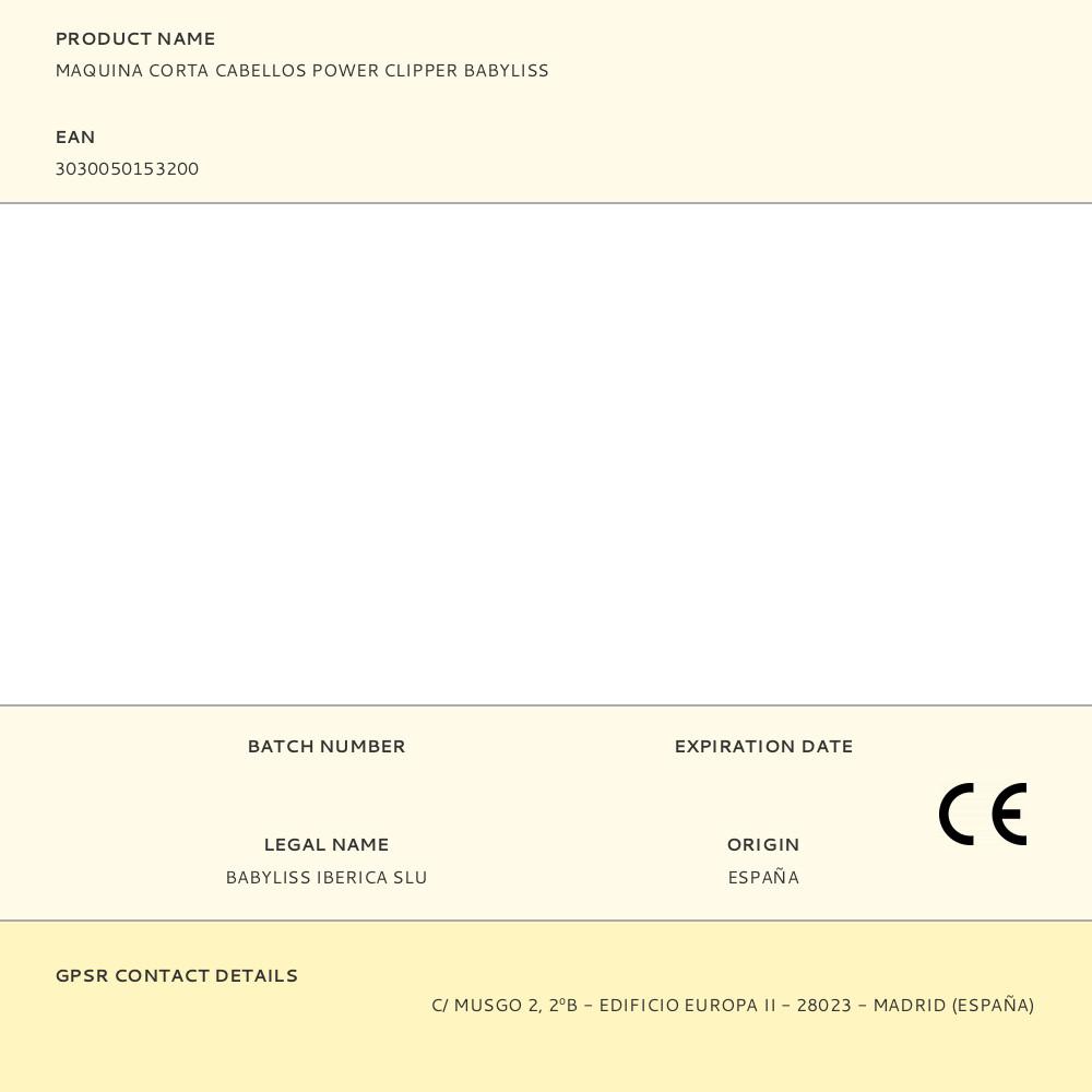 MÁQUINA DE CORTAR CABELO POWER CLIPPER BABYLISS. CABEÇAL 100% METÁLICO, LÂMINAS EM INOX DE 45mm, USO COM CABO DE 2m, 8 PENTES DE CORTE PARA CABELO, 9 LONGITUDES DE CORTE DESDE 0,5mm A 25mm. INCLUI NÉCESSAIRE E PENTE. ESCOVA DE LIMPEZA E OLEO LUBRIFICANTE. GARANTIA DE 3 ANOS. TENSÃO: 220-240V SERVICIO TECNICO https://www.afontec.com/area-de-clientes/