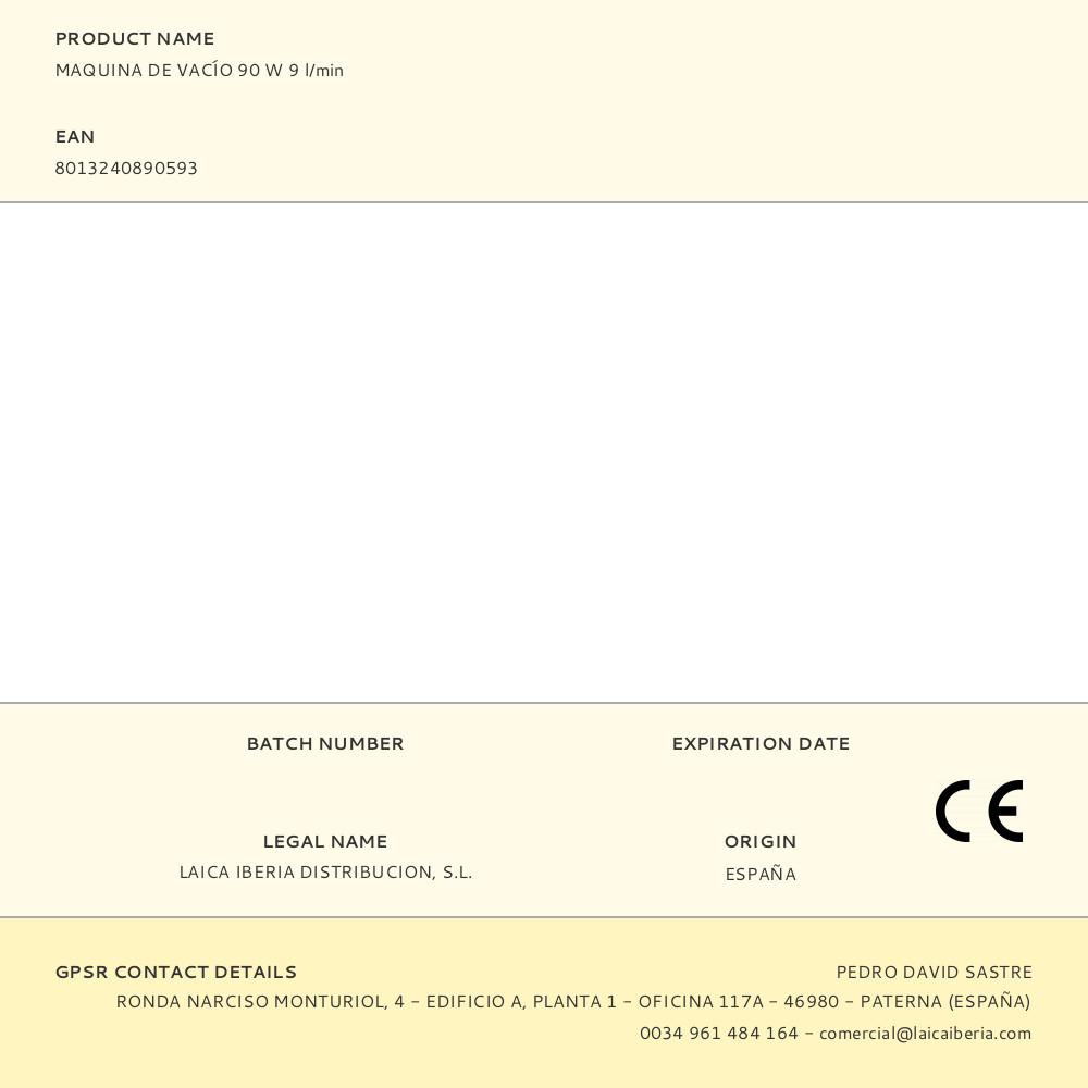 MAQUINA DE VACUO VT3205 VERDE 9L/MIN. LAICA