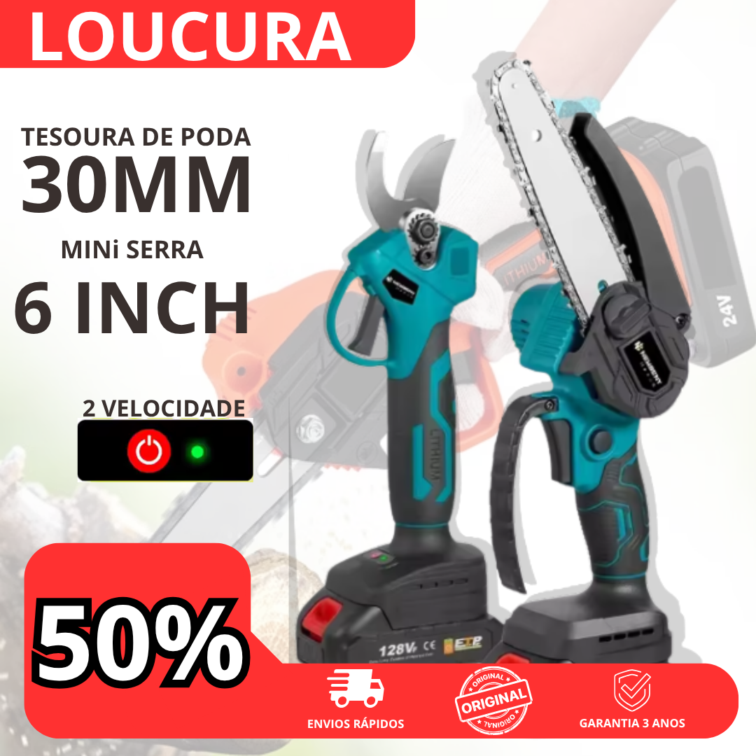 Mini Serra Eletrica 6″ + Tesouras de poda elétrica conjunto 30mm 18v