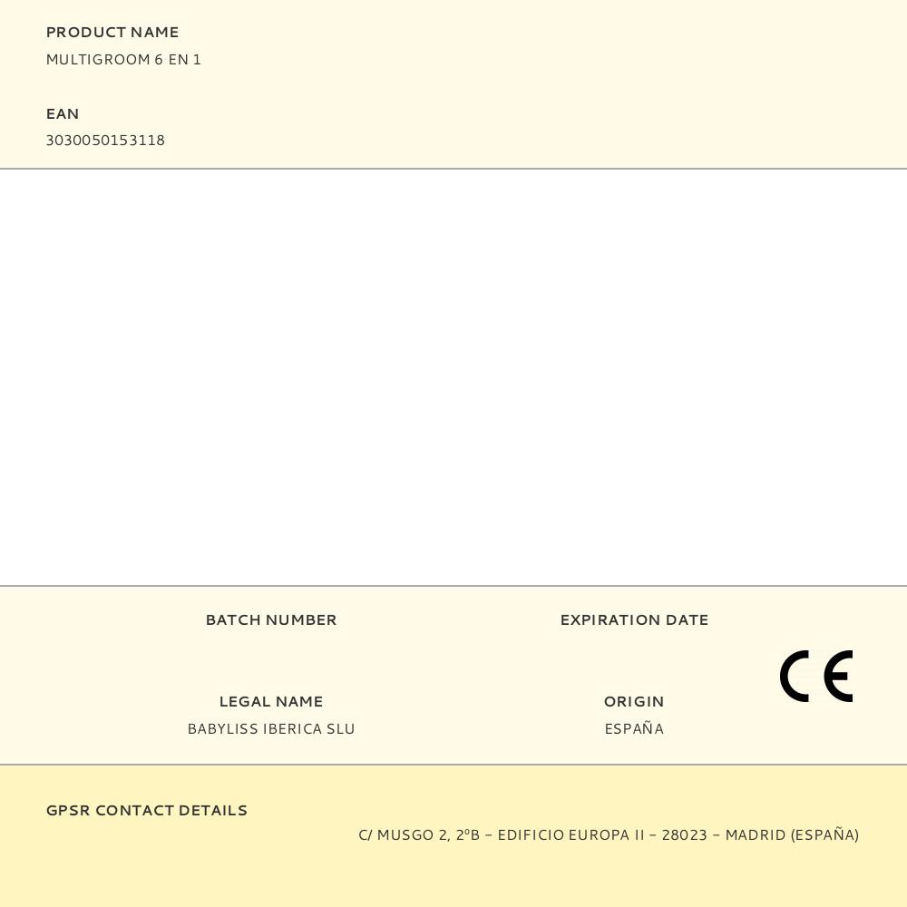 MULTIGROOM 6 EM 1 MT725E BABYLISS. LÂMINAS EM INOX DE 34mm, USO SEM CABO COM 60 MINUTOS DE AUTONOMIA, 8h DE CARGA, 1 CABEÇAL DE MANUTENÇÃO “BARBA 3 DIAS” DE 1mm A 3,5mm. 3 CABEÇAL PARA BARBA (5,6 E 7mm), NARIZ E ORELHAS. INCLUI ESTOJO PARA ARMAZENAMENTO E ESCOVA DE LIMPEZA. GARANTIA DE 3 ANOS. SERVICIO TECNICO https://www.afontec.com/area-de-clientes/