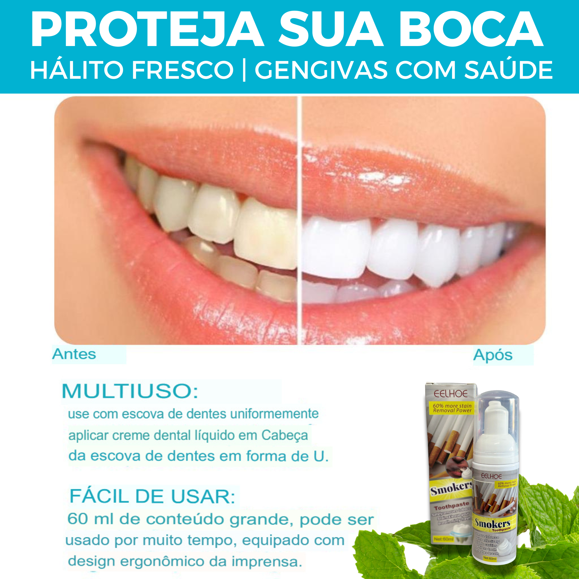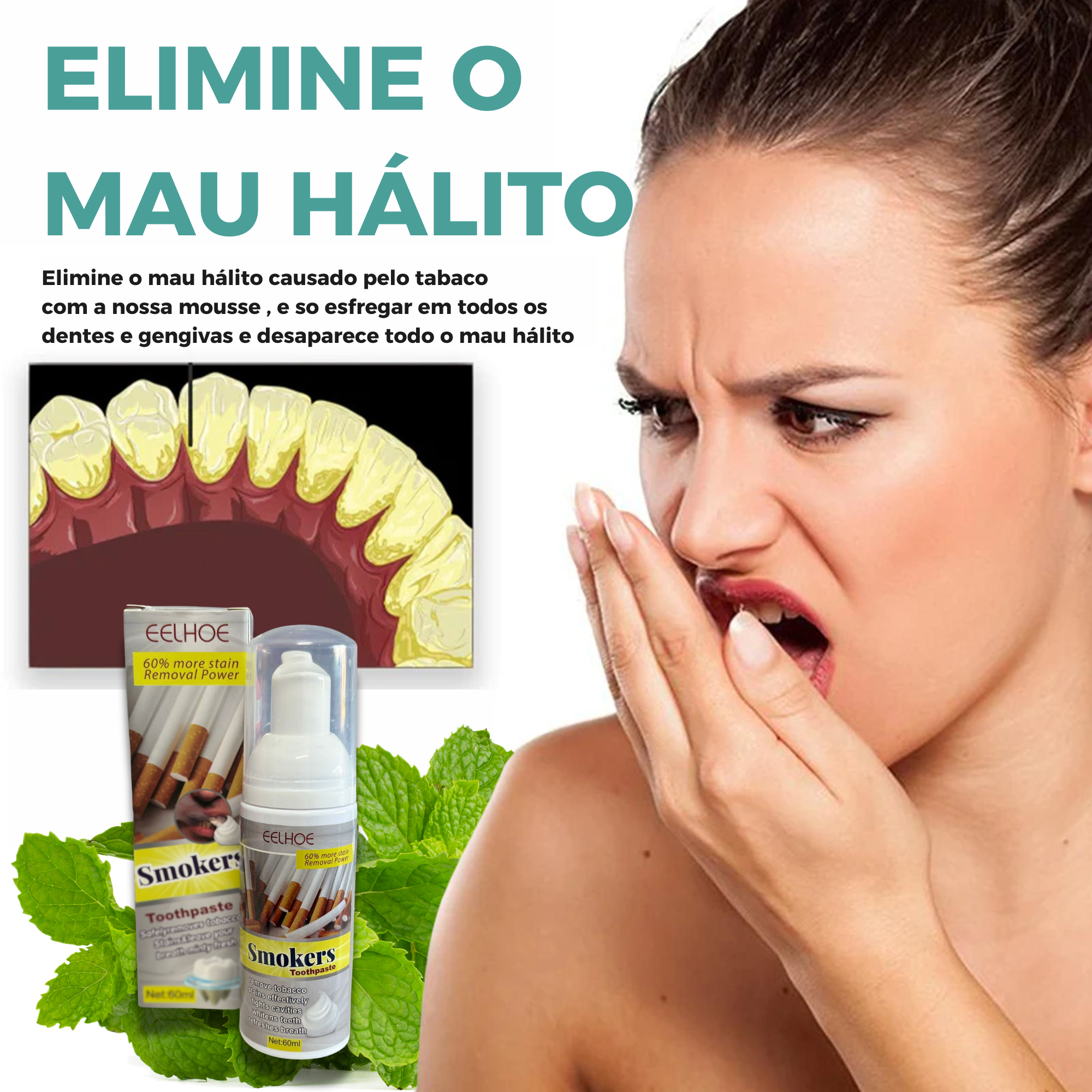 🧼 Mousse para Fumadores EELHOE 60ml – Elimine o Amarelado e o Mau Hálito!