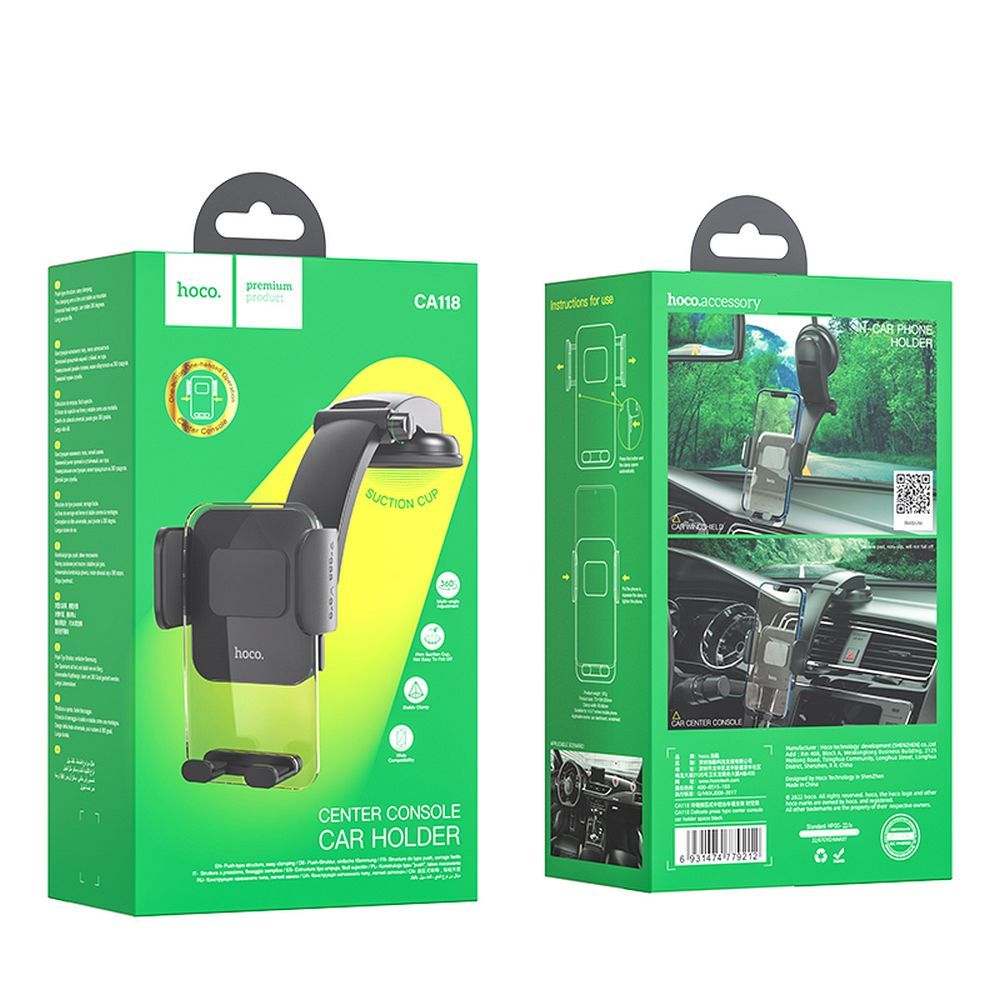 O suporte para carro Hoco CA118 com ventosas fixa-se ao para-brisa ou ao painel. O sistema de ajuste integrado permite que você ajuste o suporte às suas preferências.
