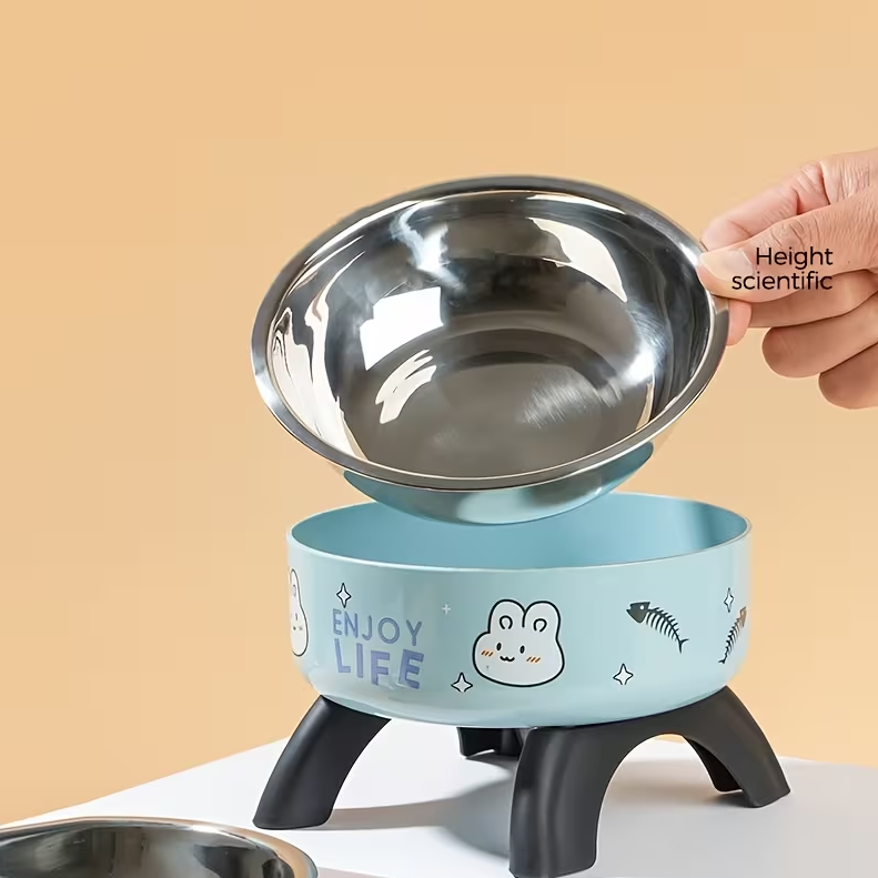 Tigelas Elevadas em Aço Inoxidável para Animais de Estimação com Design Anti-Queda e Antiderrapante, Apresentando Padrões Fofos, Adequadas para Gatos e Cães Pequenos Comer e Beber.